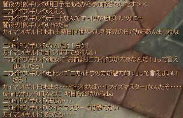 同盟の某氏が女性だという事が判明し沸き上がる人たちに問い掛けをして後悔するニカイドウの図